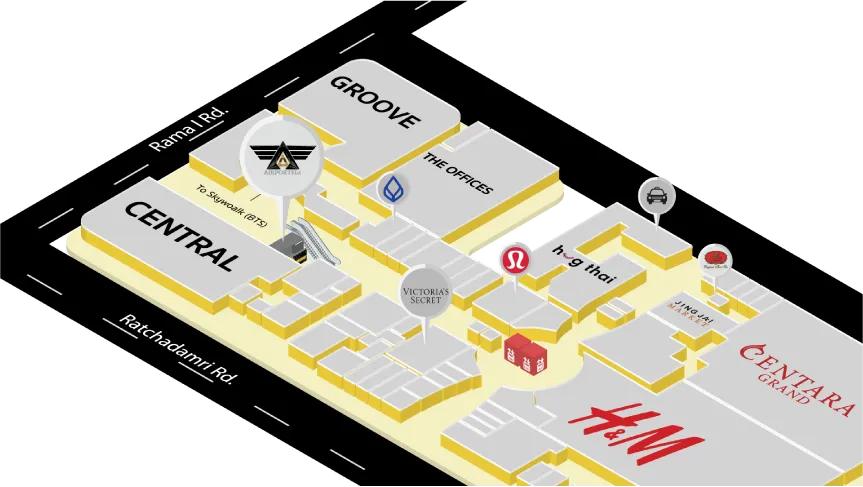 | Central World | บูธ AIRPORTELs ชั้น 1 โซน Groove โซนฮักไทย ข้างชาตรามือ ทางออก D เปิดทำการทุกวัน เวลา 11:00-22:00 น. ![]() |